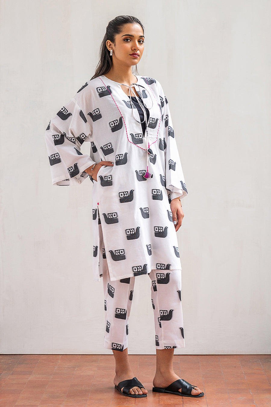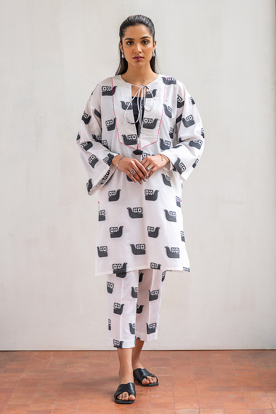2 pc set - Shirt and pants in yarn dyed woven fabric (bird motif).