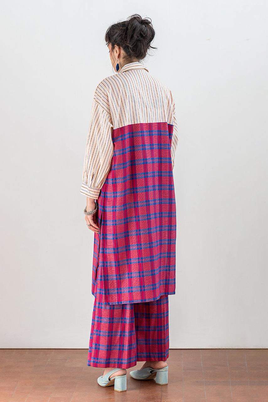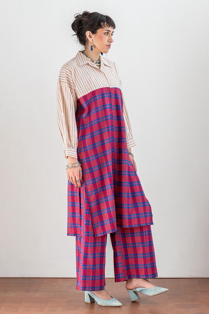 - Description: 2 Pc Checkered Front Open Shirt With A Contrast Striped Fabric