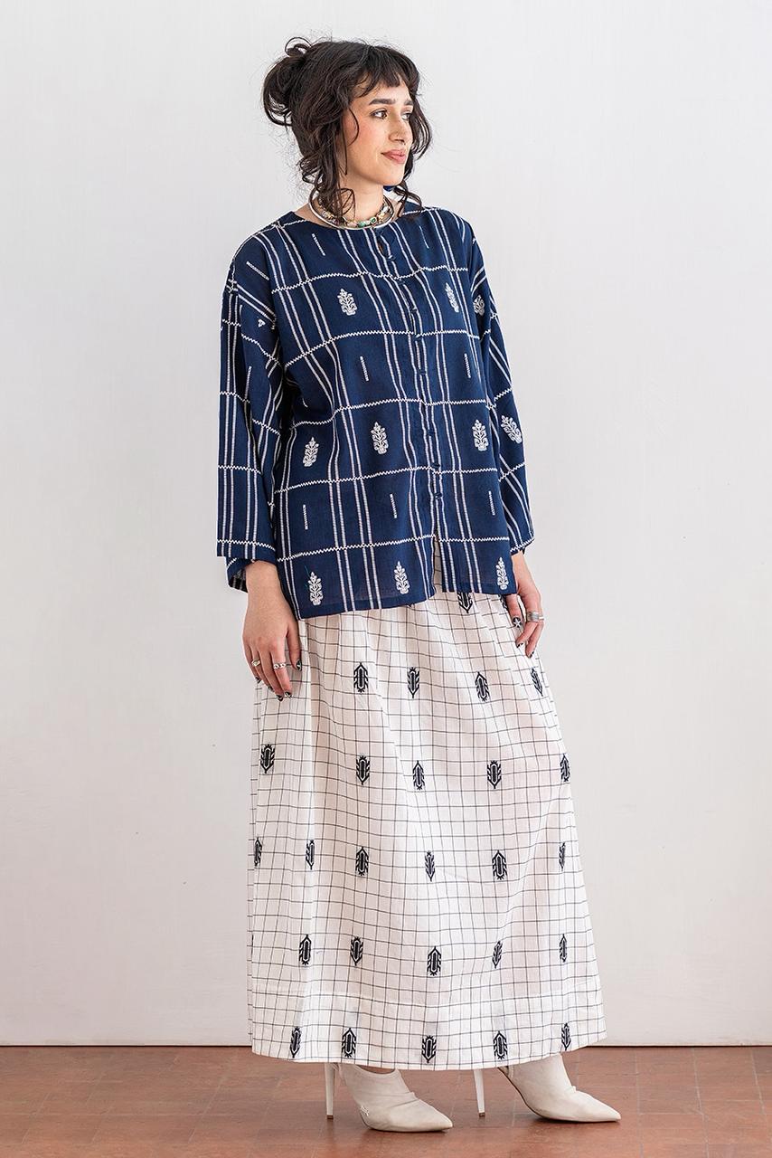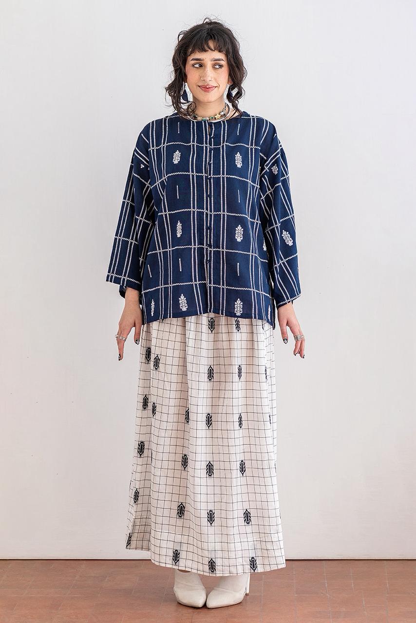 - Description: Jacquard Skirt With Front Buttoned Jacquard Top In A Contrast Colour