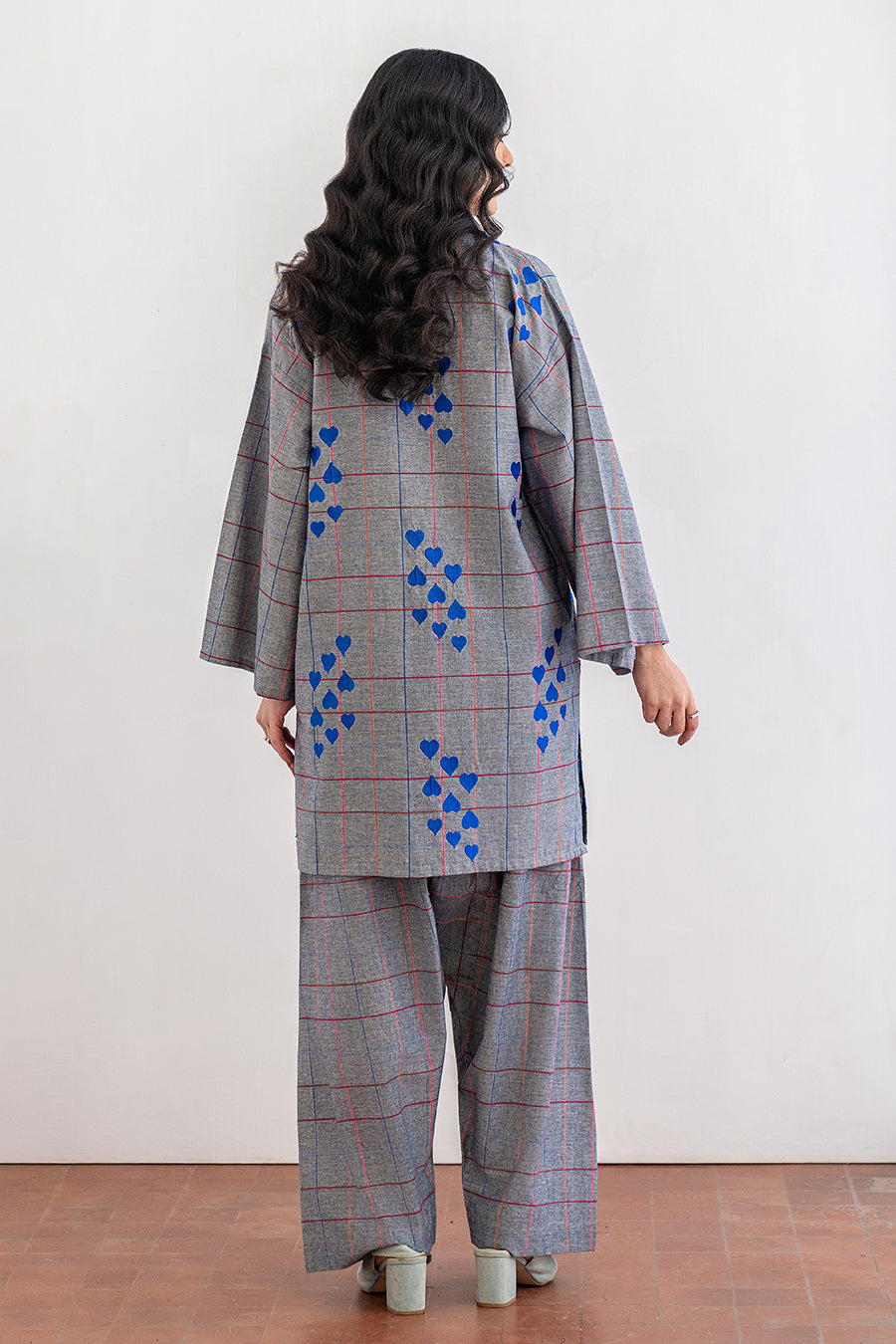 - Description: Heart Embroidery On A Checkered Fabric