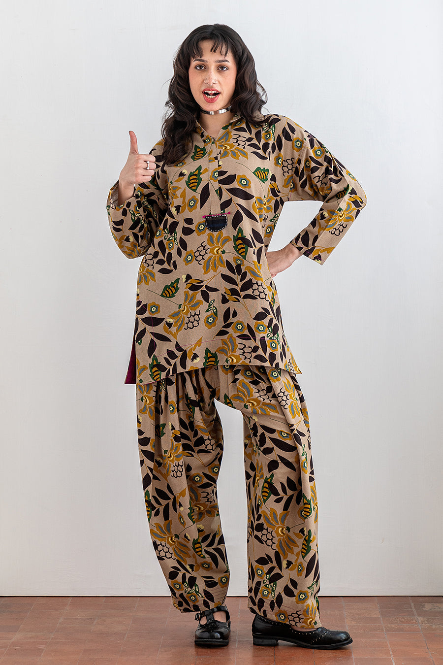 - Description: Printed Foral Shirt With Shalwar And Handwork Detail On Front