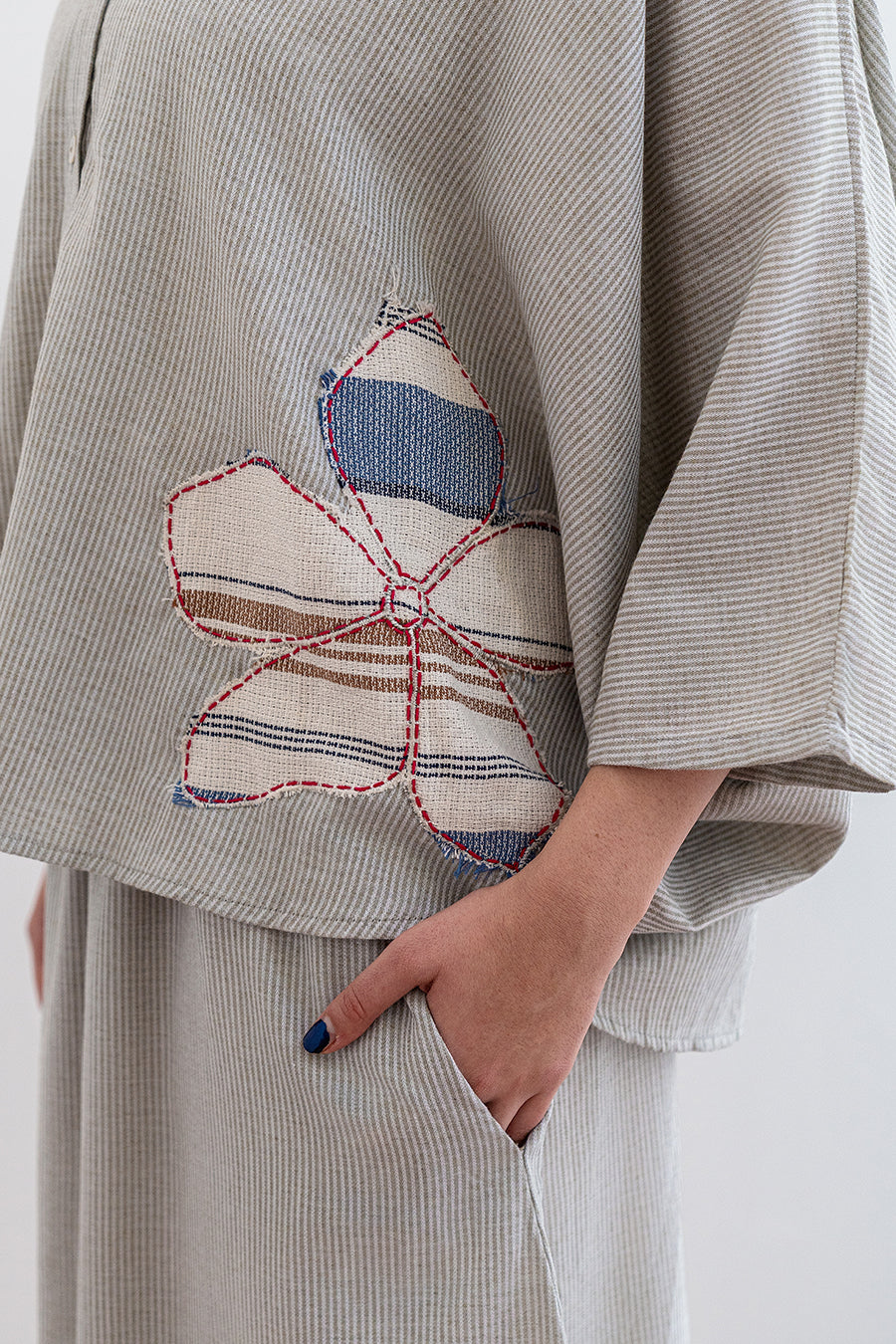 - Description: Batwing Shirt With Contrast Fabric Patch And Handwork Detail