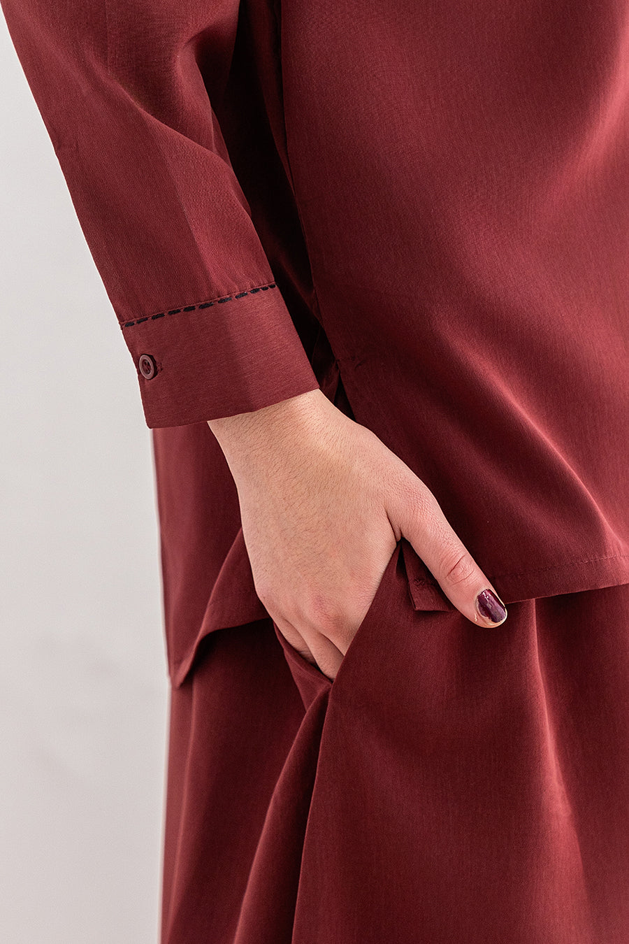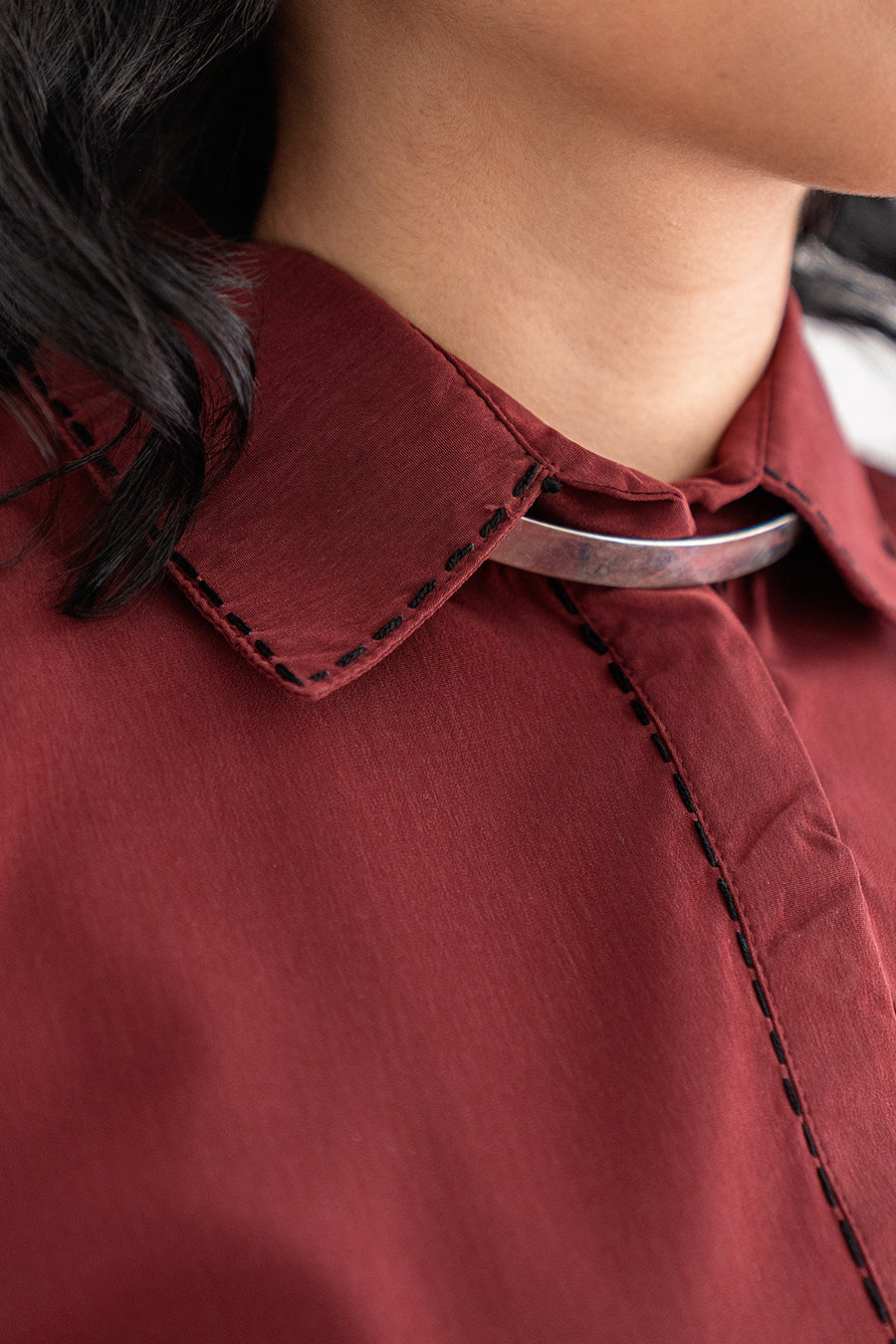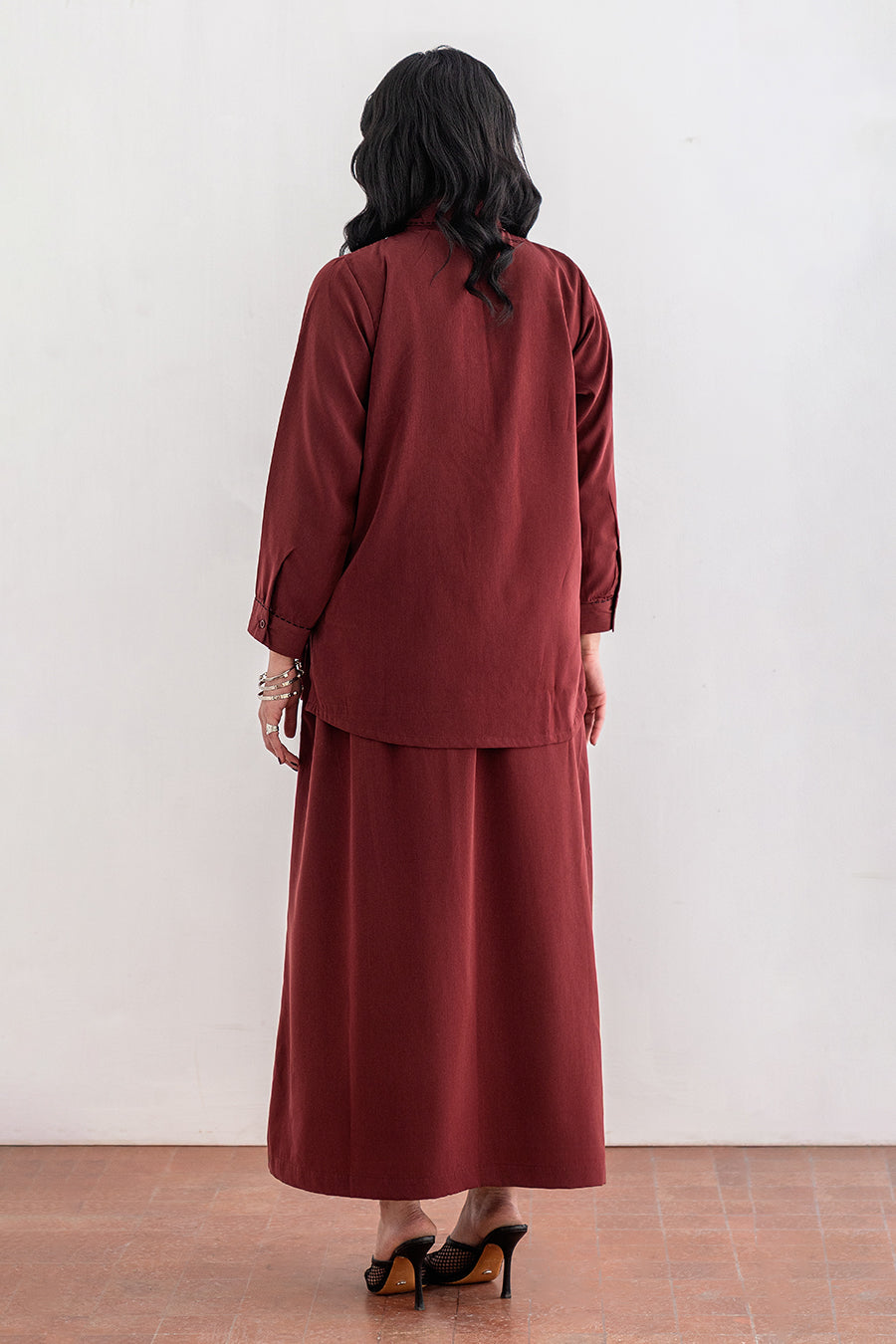 - Description: Basic Collared Button Down With A Skirt And Hand Emroidery Details