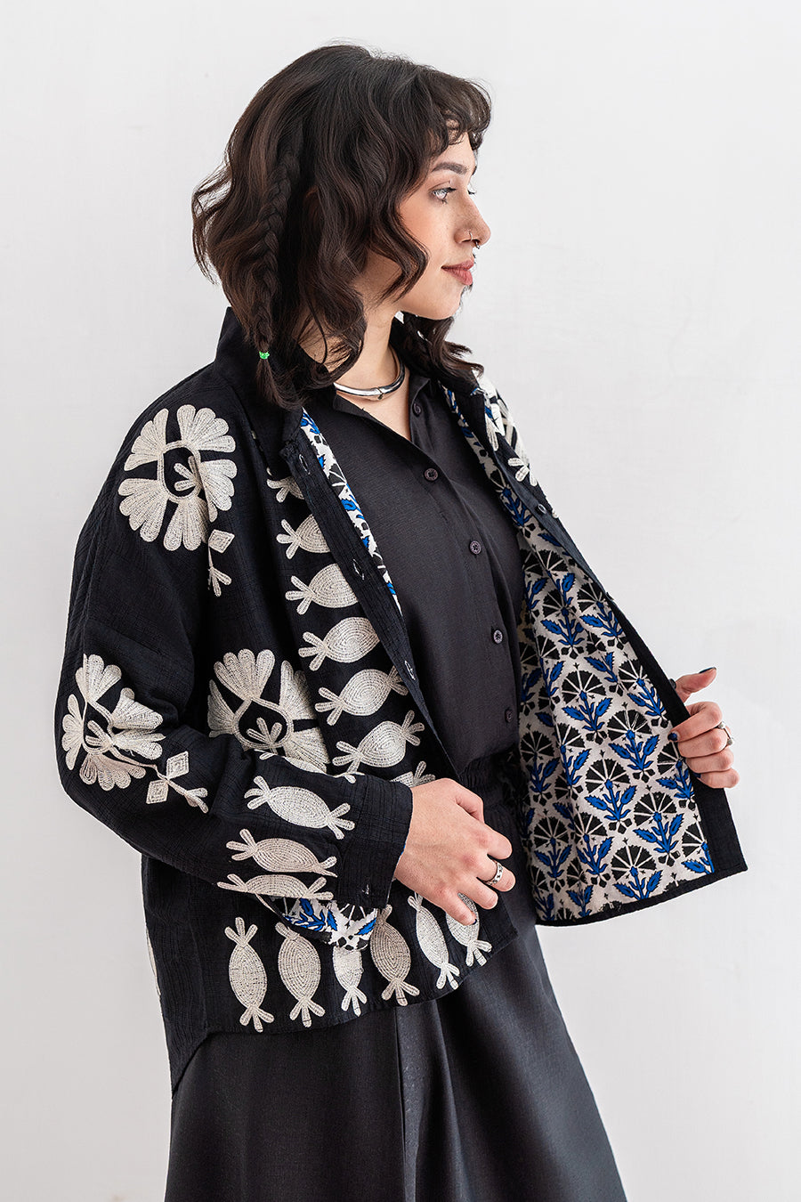 - Description: Uzbek Embroidered Jacket With Block Printed Lining
