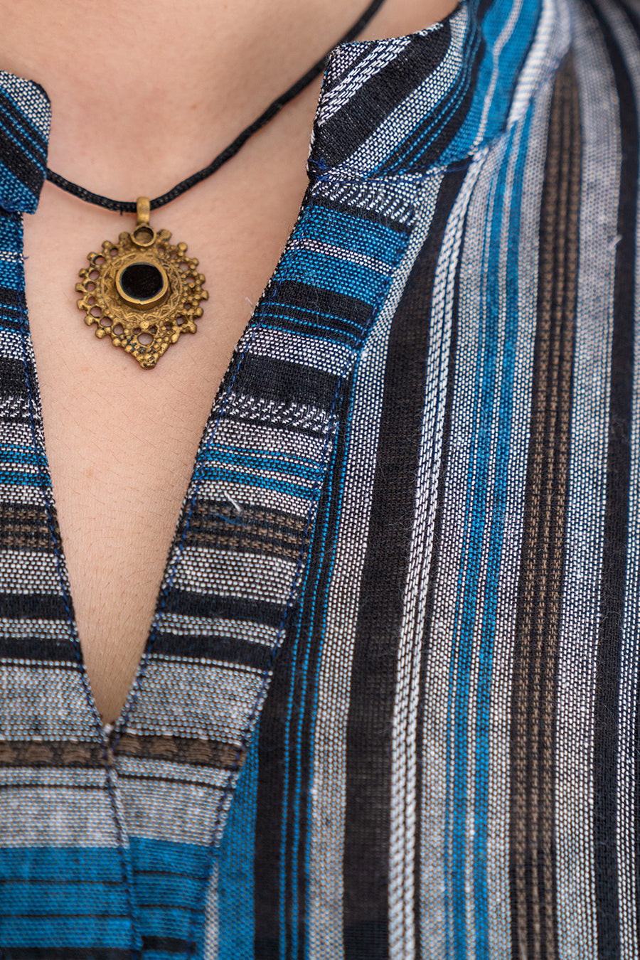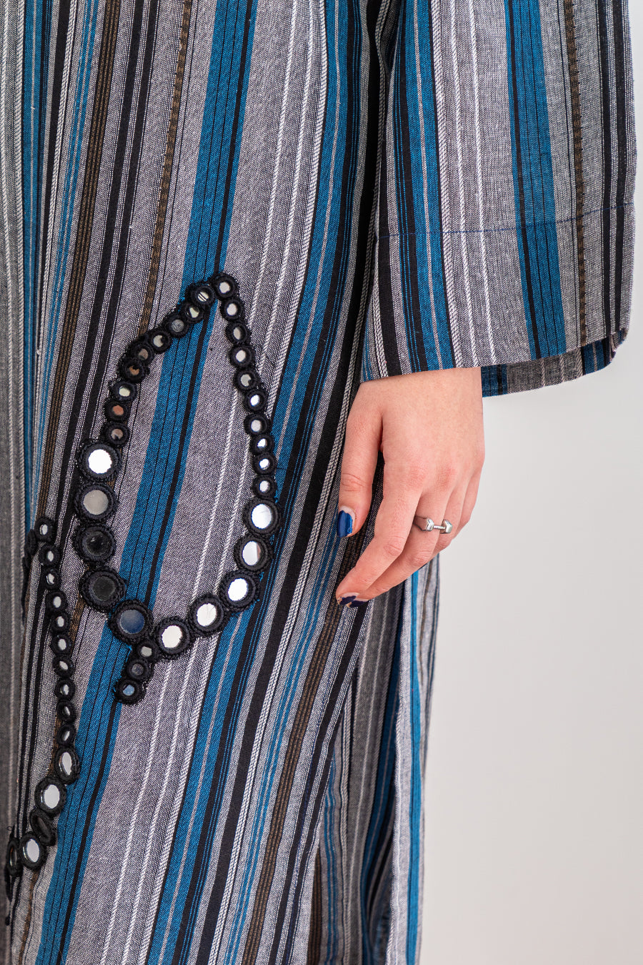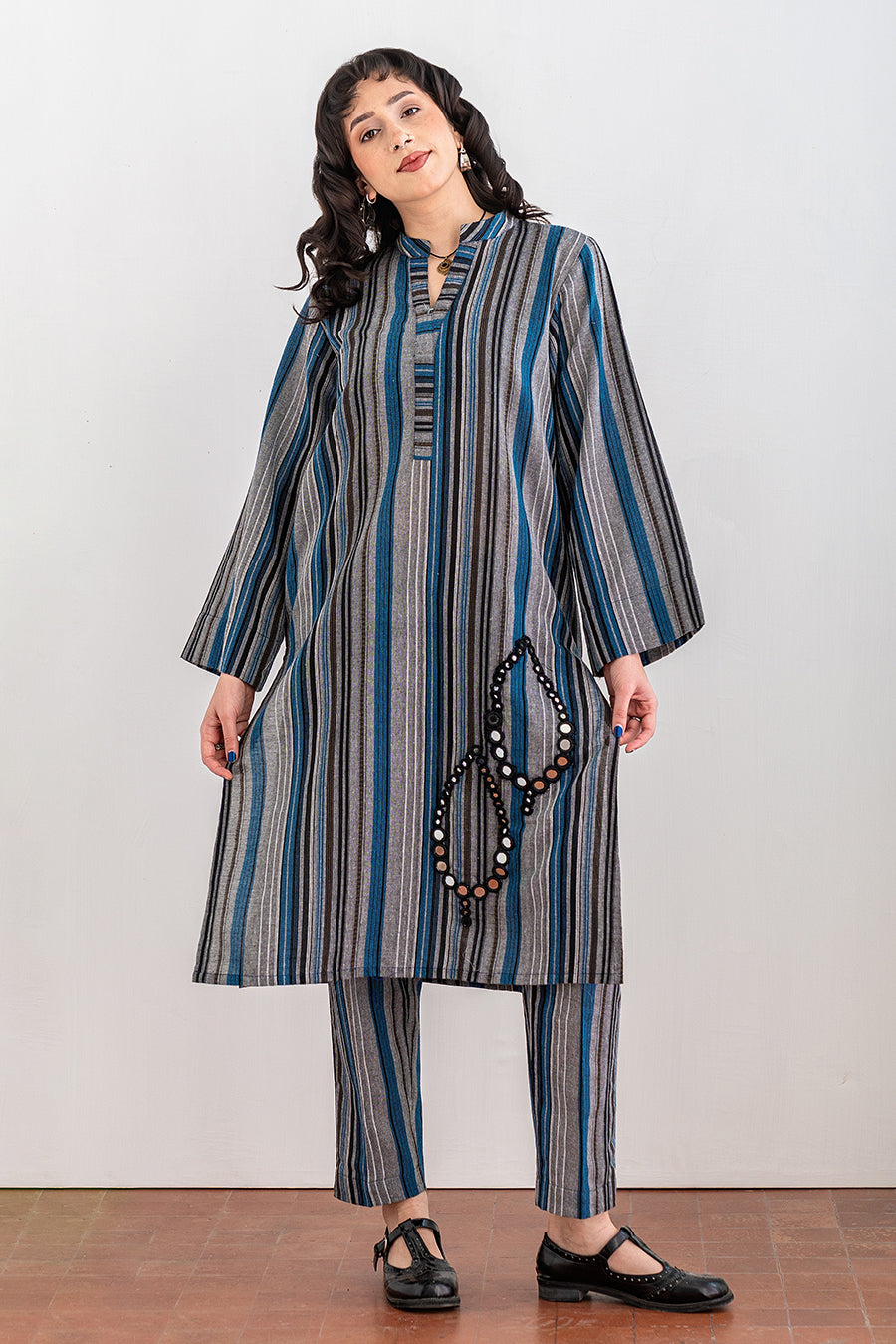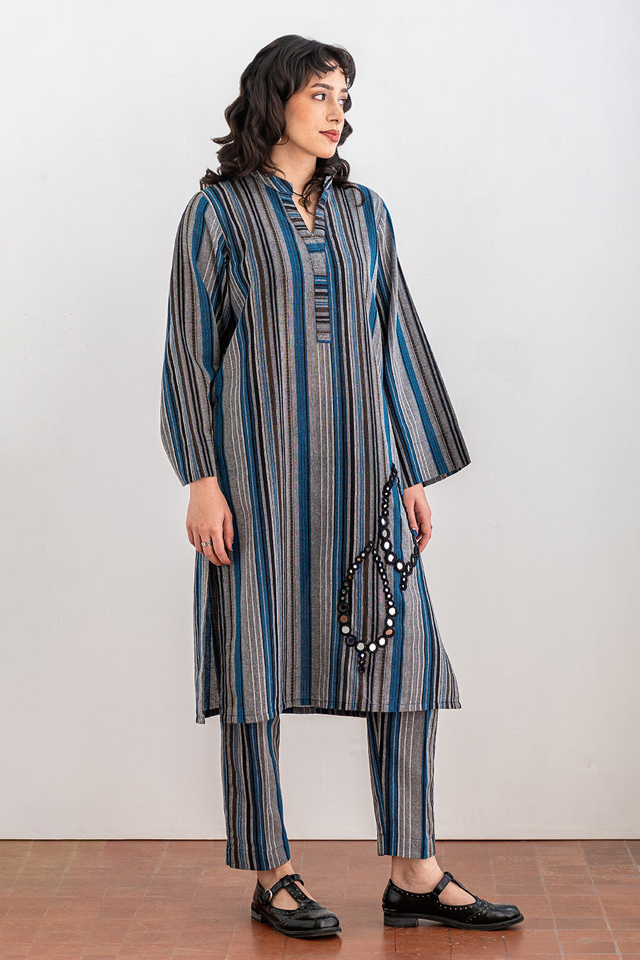 - Description: Yarn Dyed Striped Set With Mirror Work