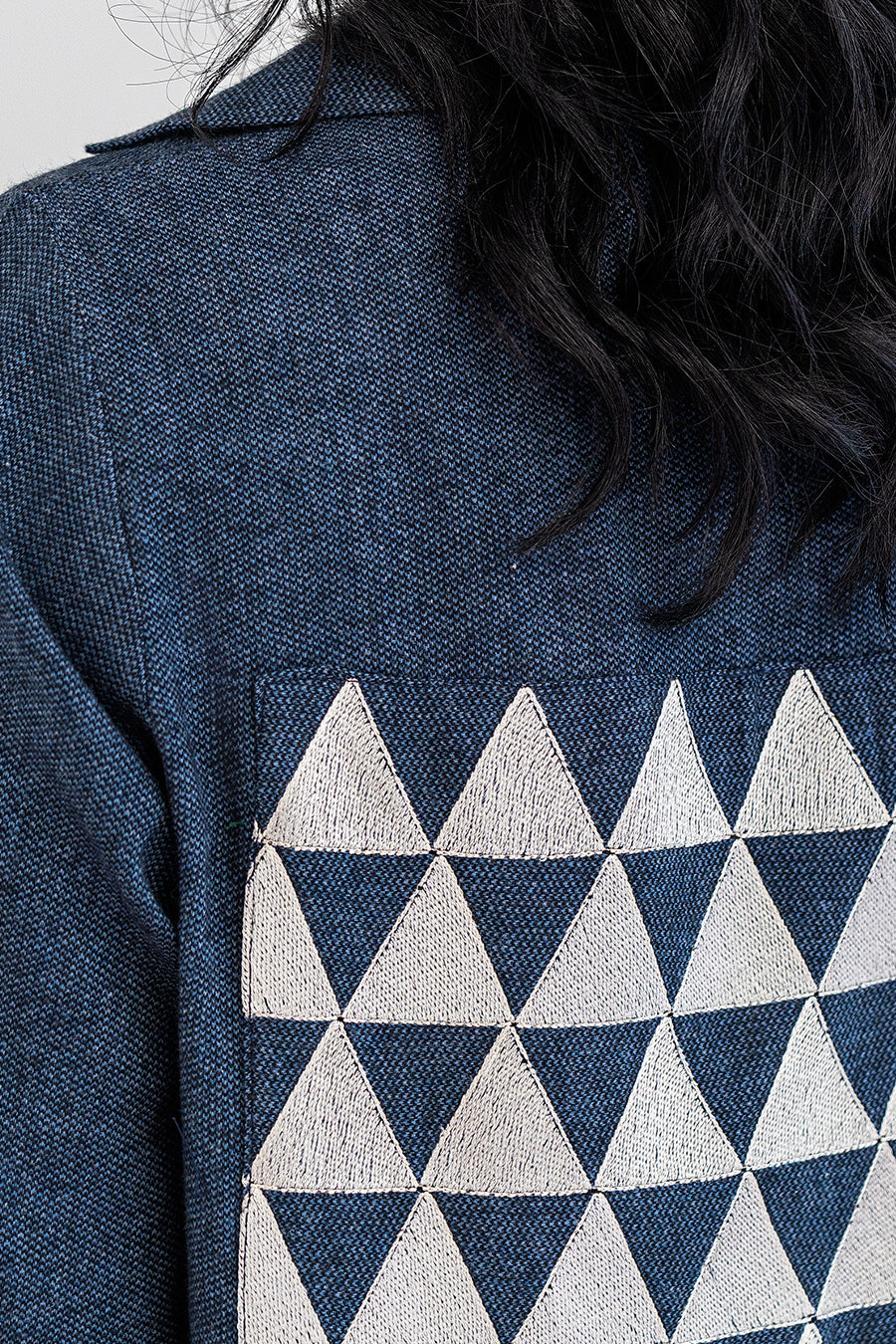 - Description: Blazer With Back Embroidery Detail And Barrel Pants