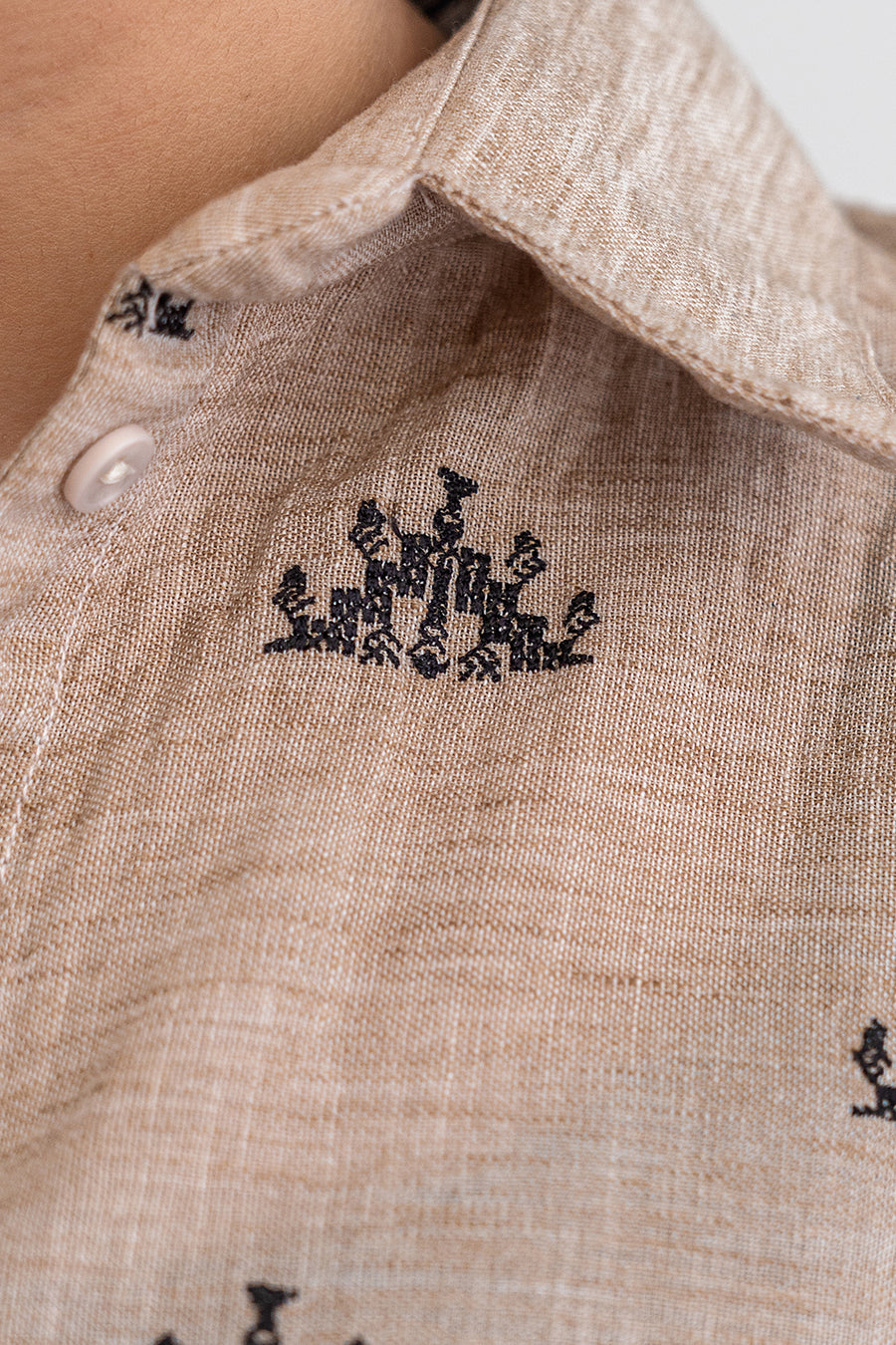 - Description: Button Down Shirt With Geometric Embroidery And Skirt