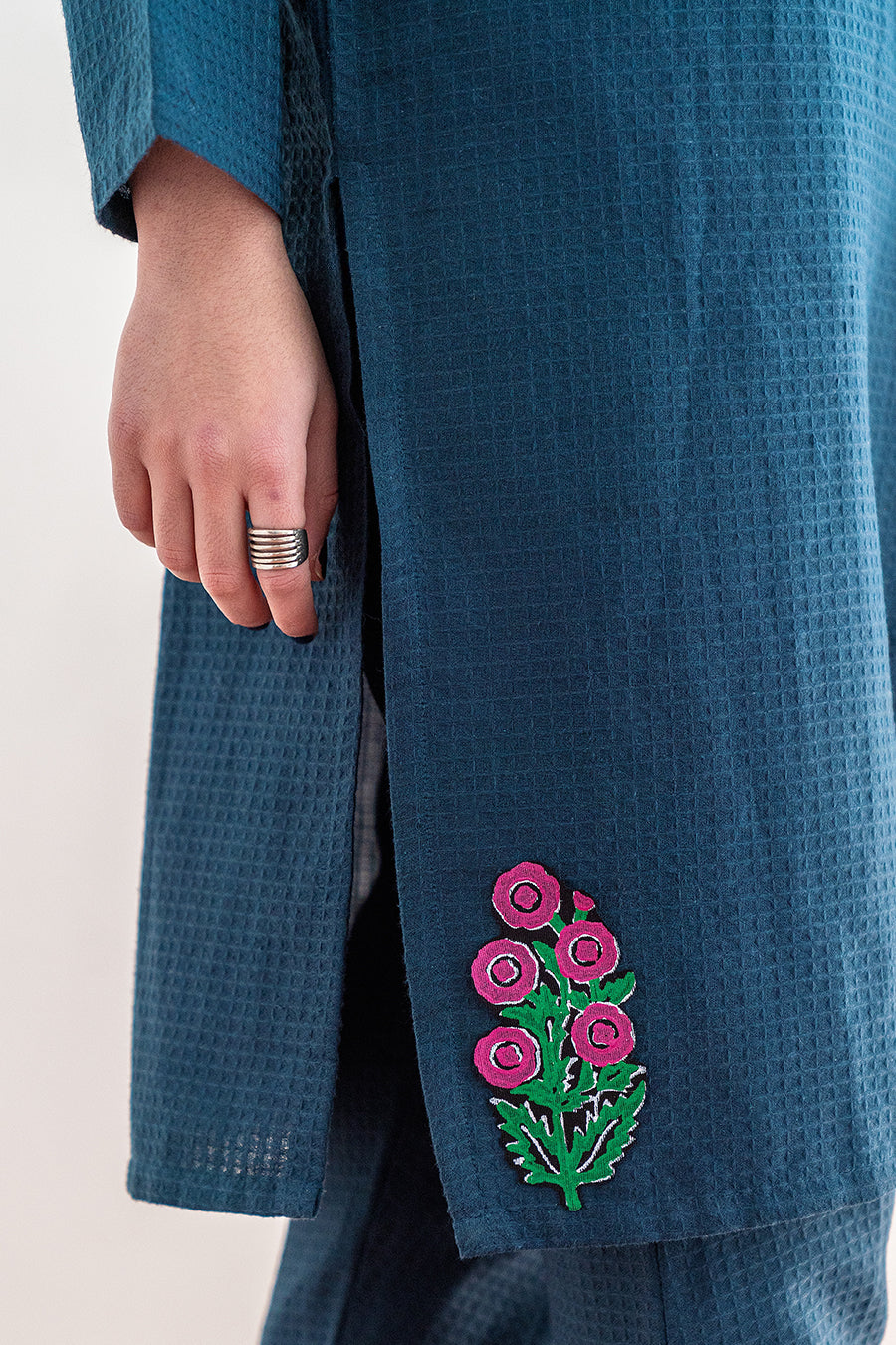 - Description: Embroidered Neckline Shirt With Block Printed Patch Details And Pants