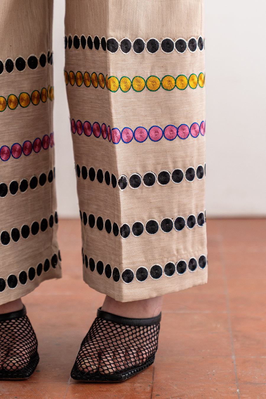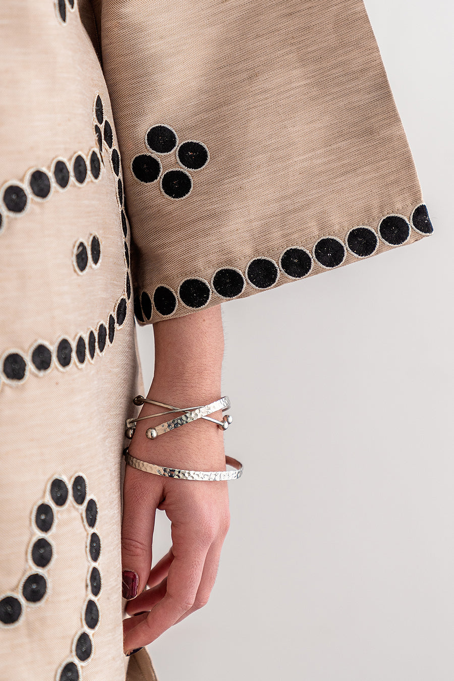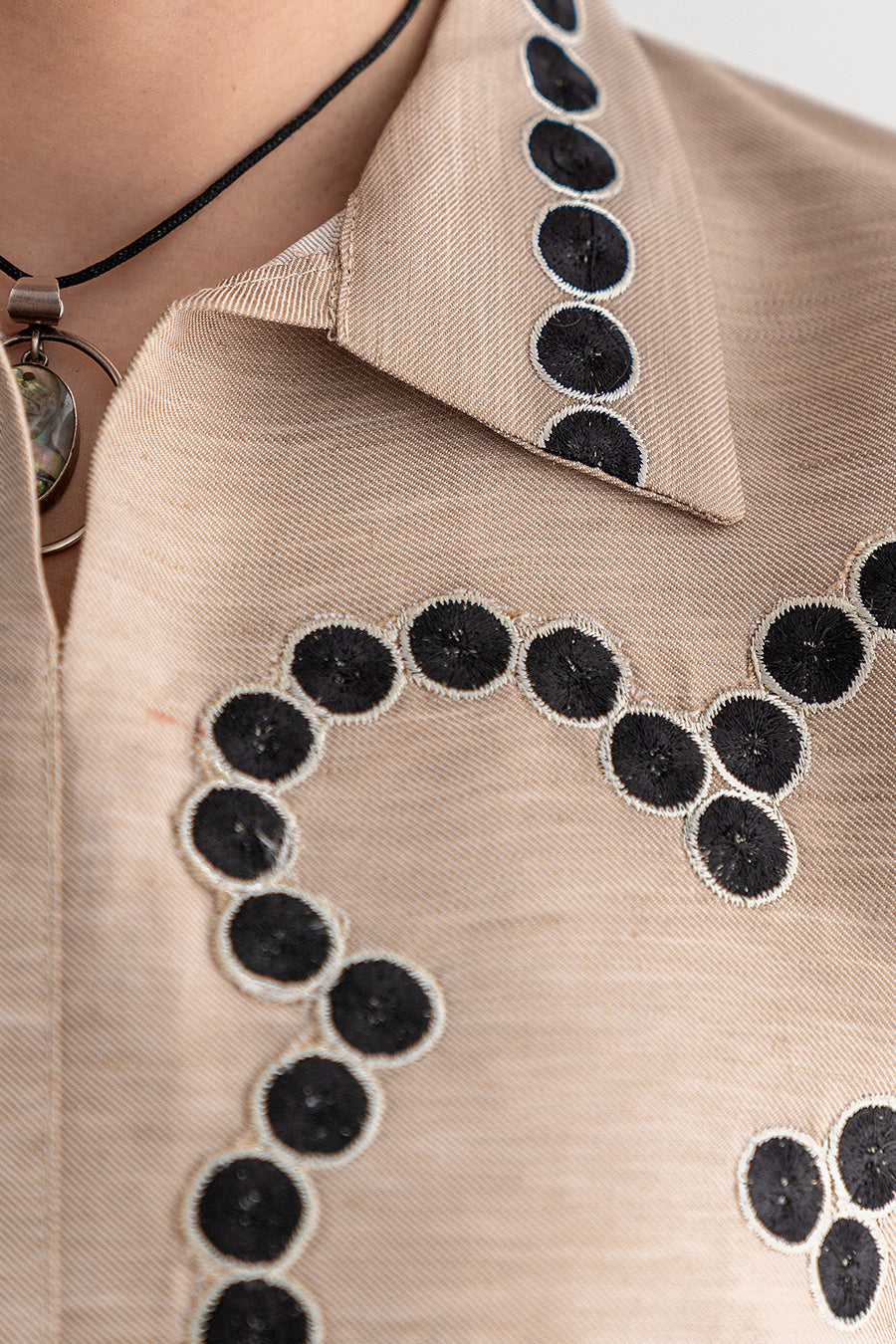 - Description: Textured Fabric With Composed Geometric Embroidery